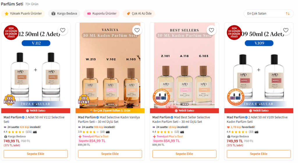 Mad Parfüm’ün Trendyol’daki başarısının temelinde set kategorisini doğru konumlandırması yer alır.