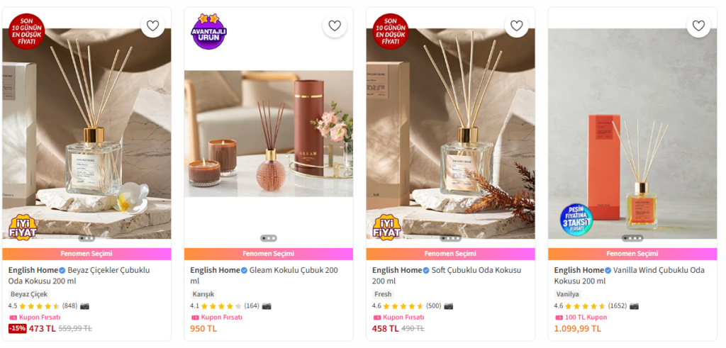 Özellikle koku, mum ve dekoratif ev ürünleri setleri, hem hediye hem de kişisel kullanım amacıyla yüksek talep görmektedir.