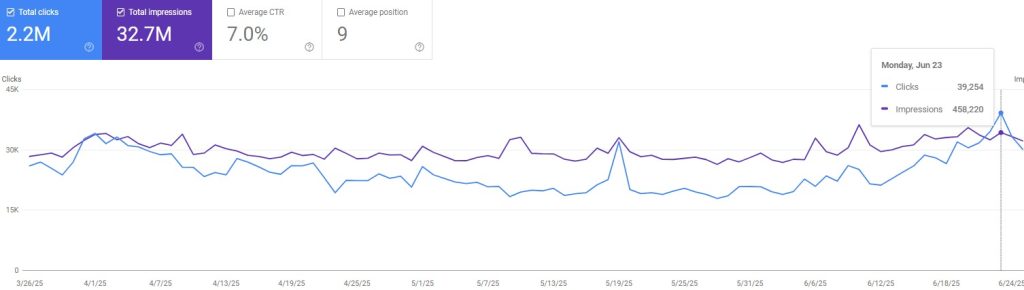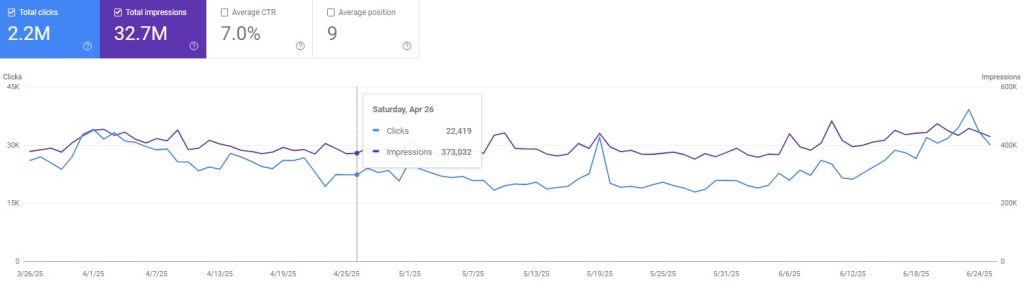 2.2M Tıklama | 32.7M Gösterim | 7% CTR | Ortalama Pozisyon: 9
