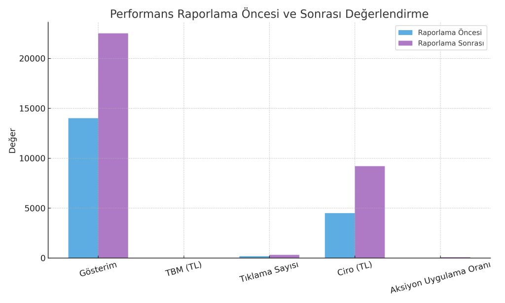 - Tıklama başı maliyet (TBM), gösterim, dönüşüm oranları analiz edilir
