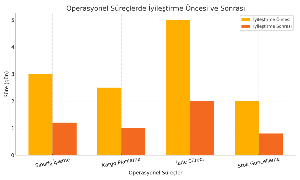 - Sipariş, stok, kargo süreçleri optimize edilir