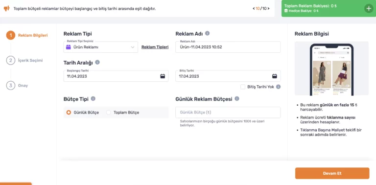 - En çok favori alan ürünleri reklamla desteklemek